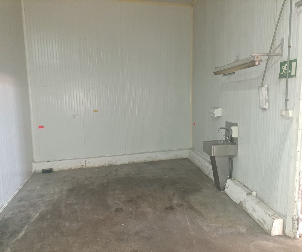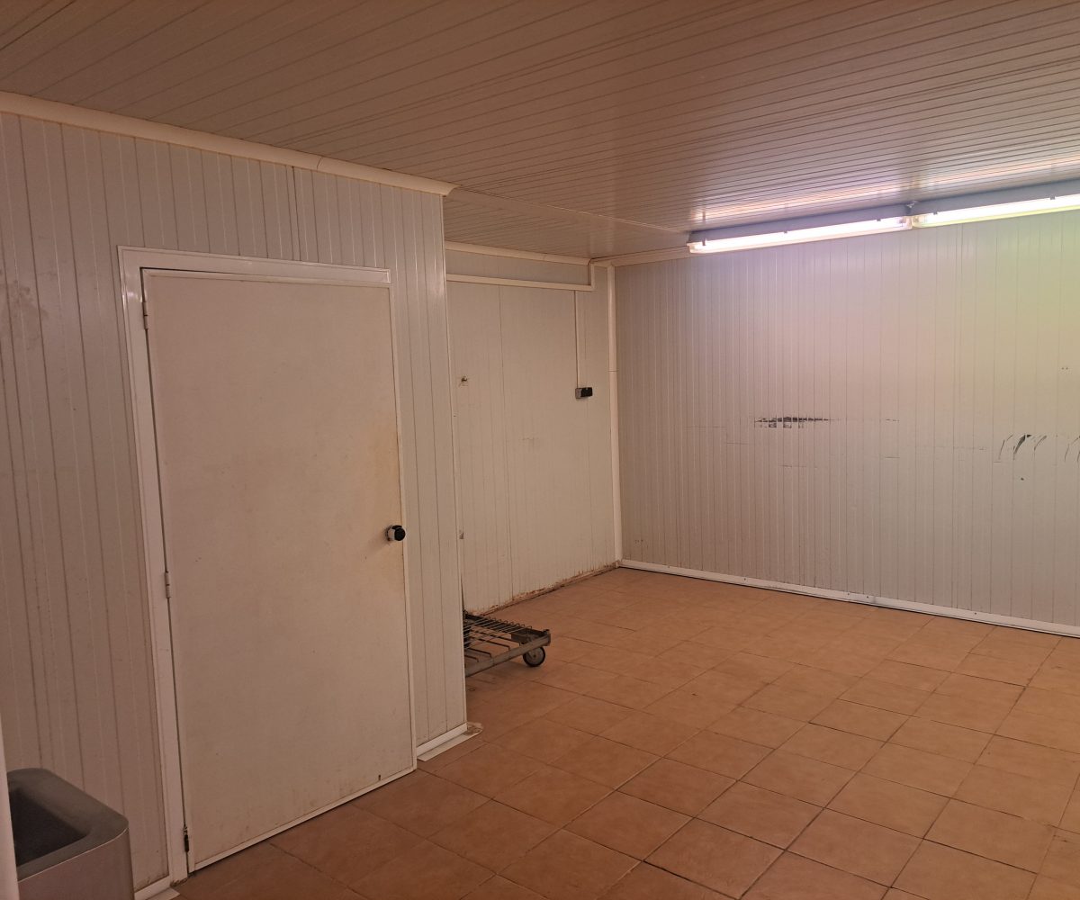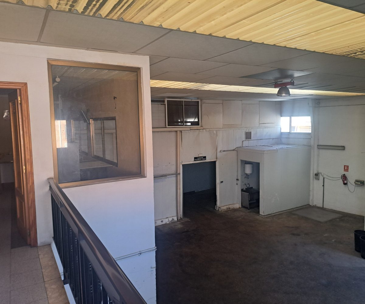 Nave  esquinera en venta de 500 m2 en avenida Jaime I de Benifaió, con diversas cámaras de frío, báscula, aseos, vestidores, oficinas y altillo para almacén de materiales.