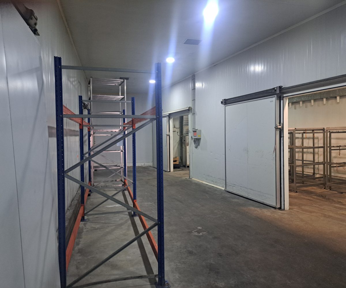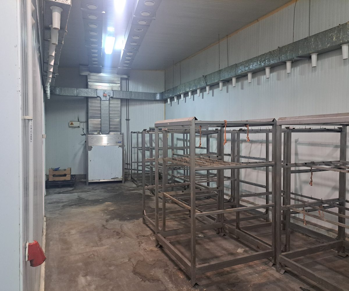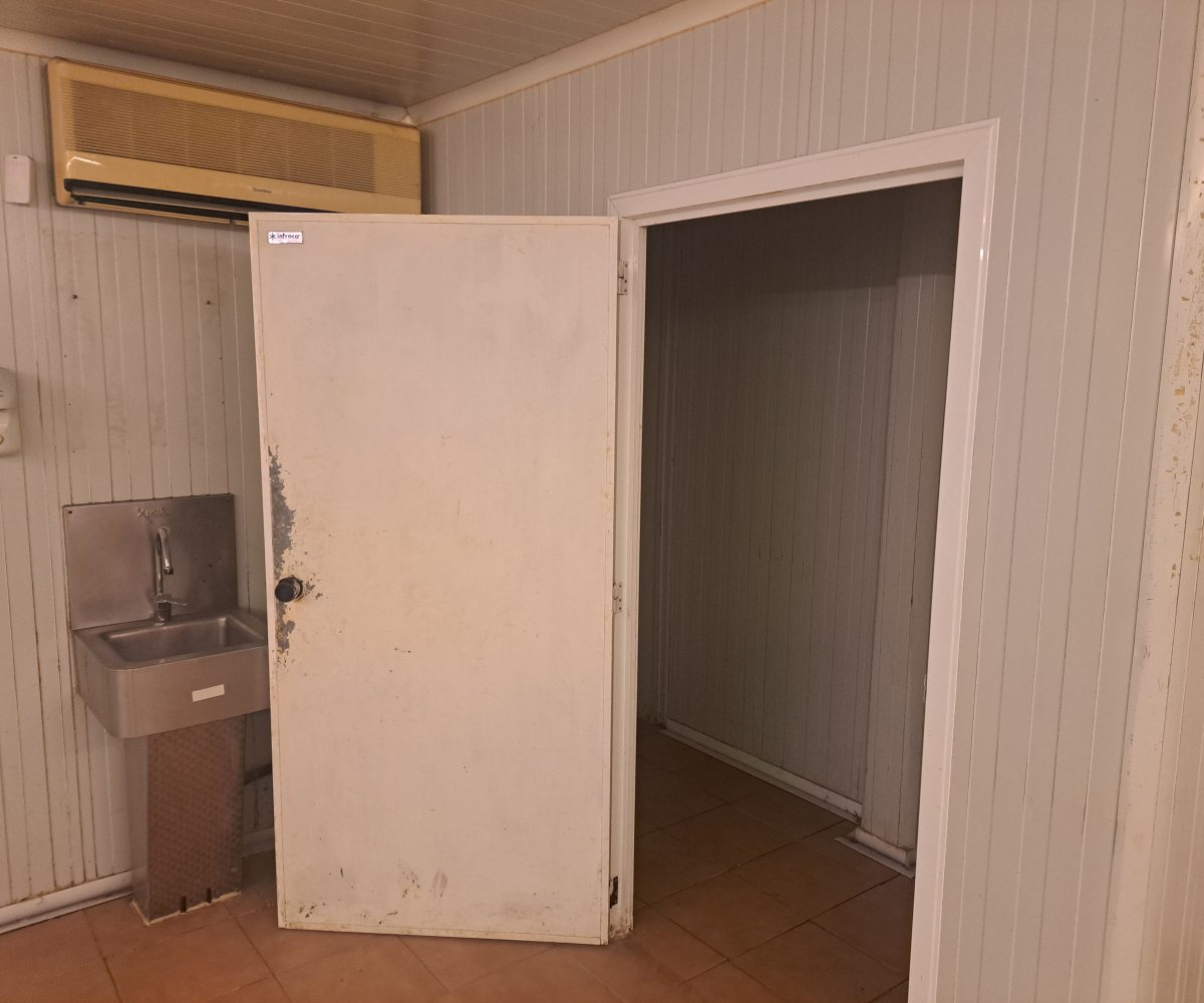 Nave  esquinera en venta de 500 m2 en avenida Jaime I de Benifaió, con diversas cámaras de frío, báscula, aseos, vestidores, oficinas y altillo para almacén de materiales.