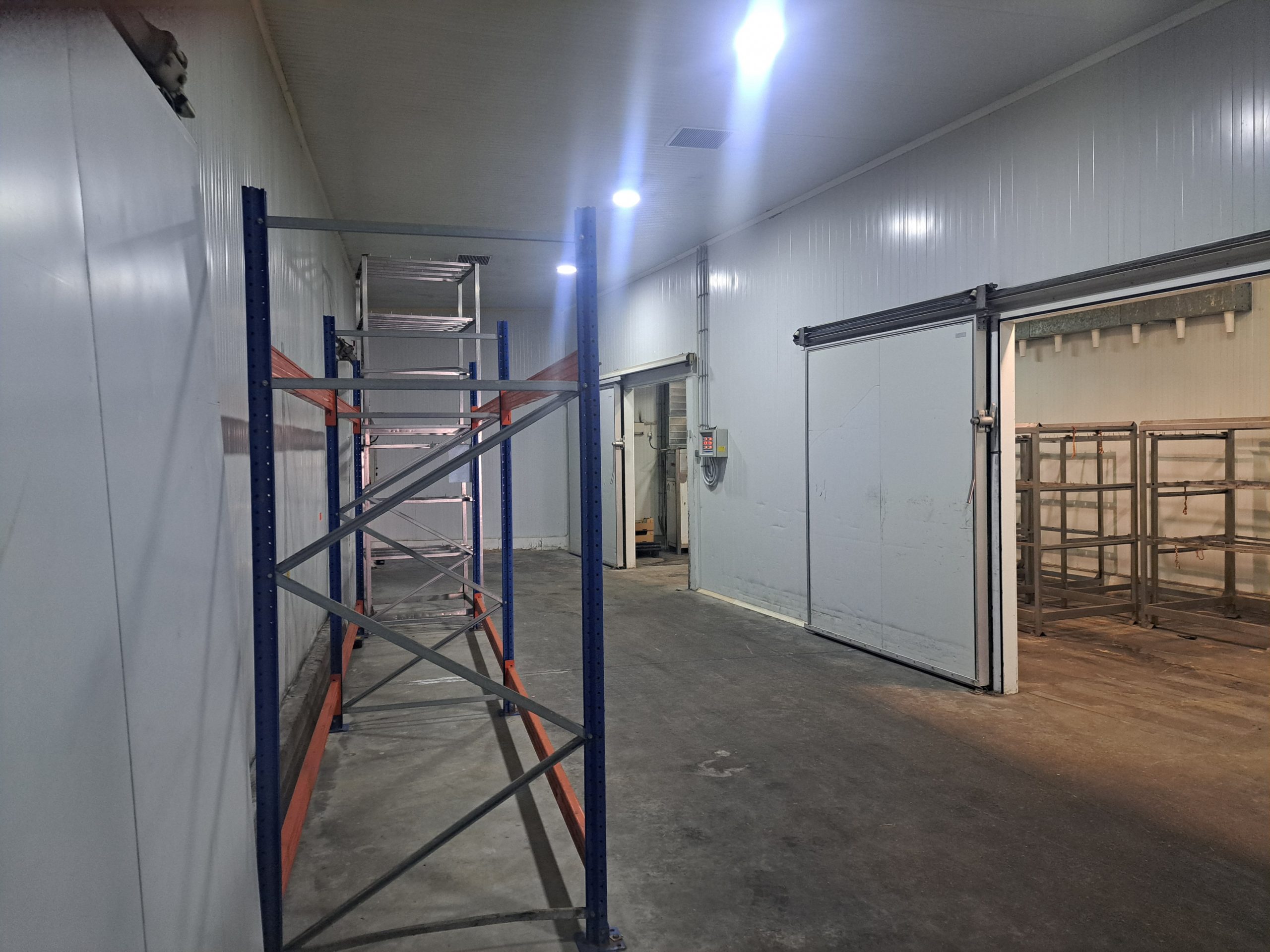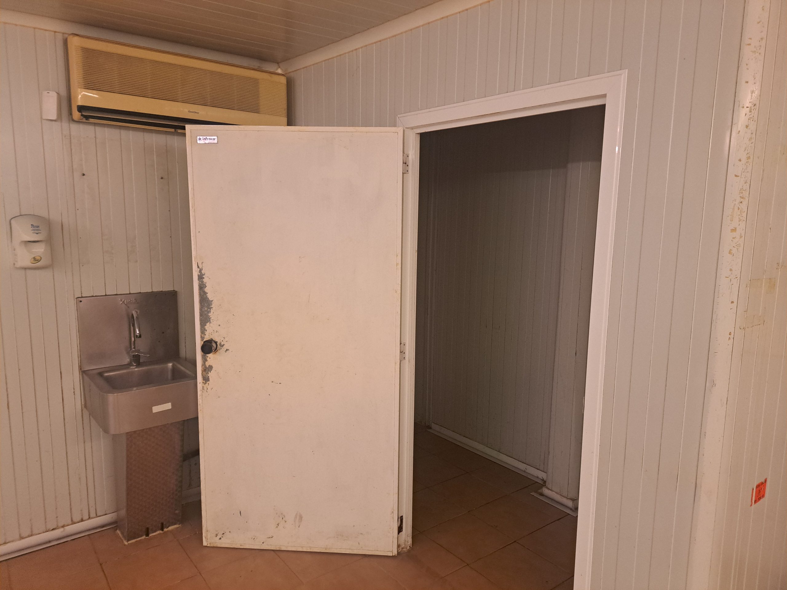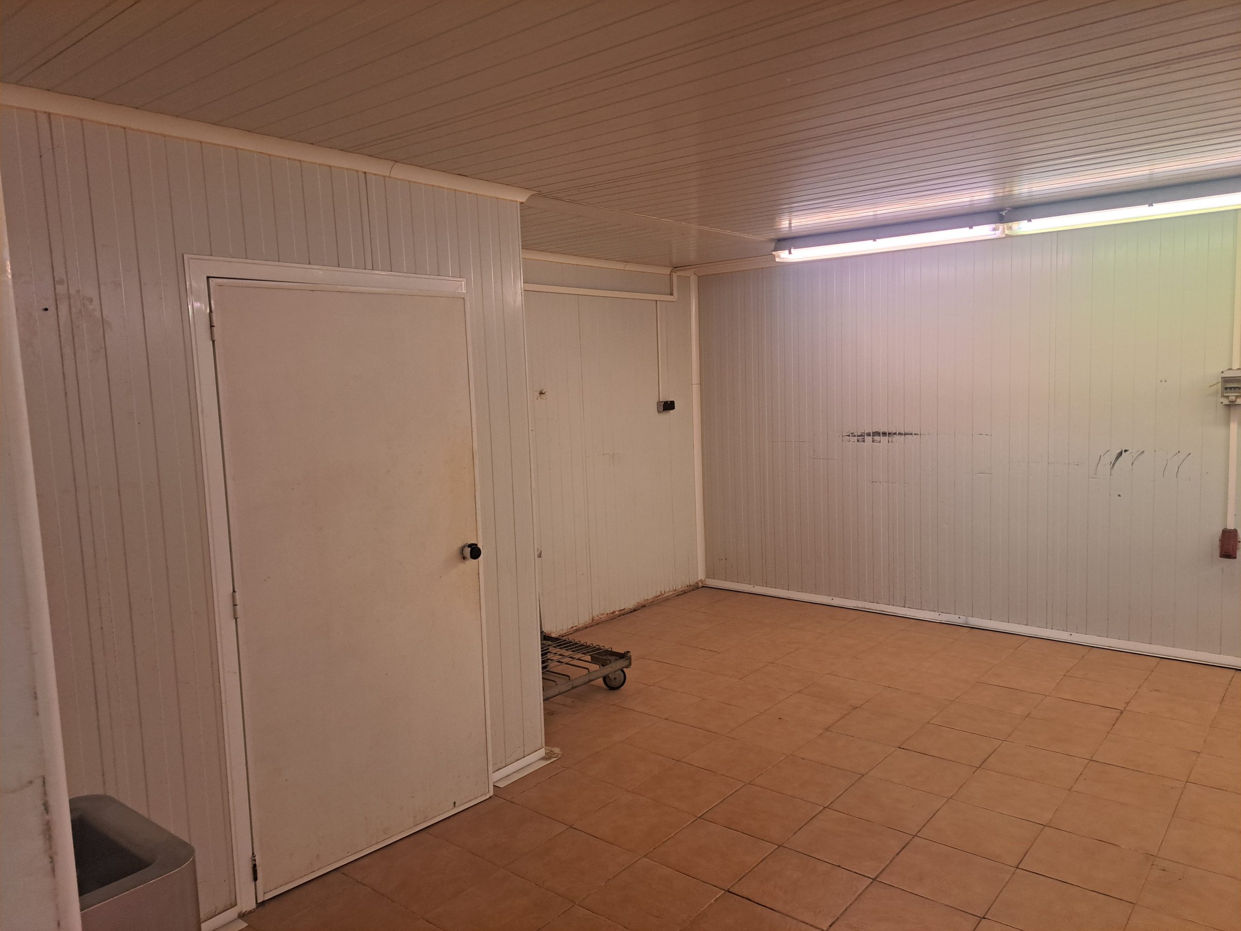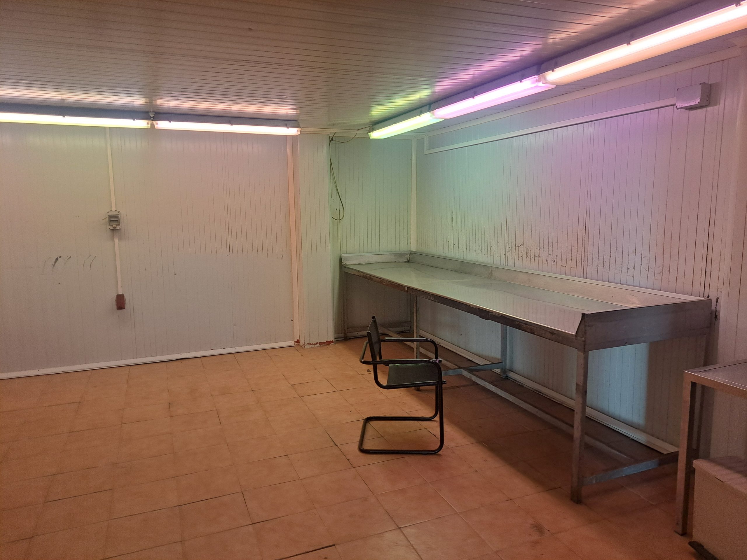 Nave  esquinera en venta de 500 m2 en avenida Jaime I de Benifaió, con diversas cámaras de frío, báscula, aseos, vestidores, oficinas y altillo para almacén de materiales.